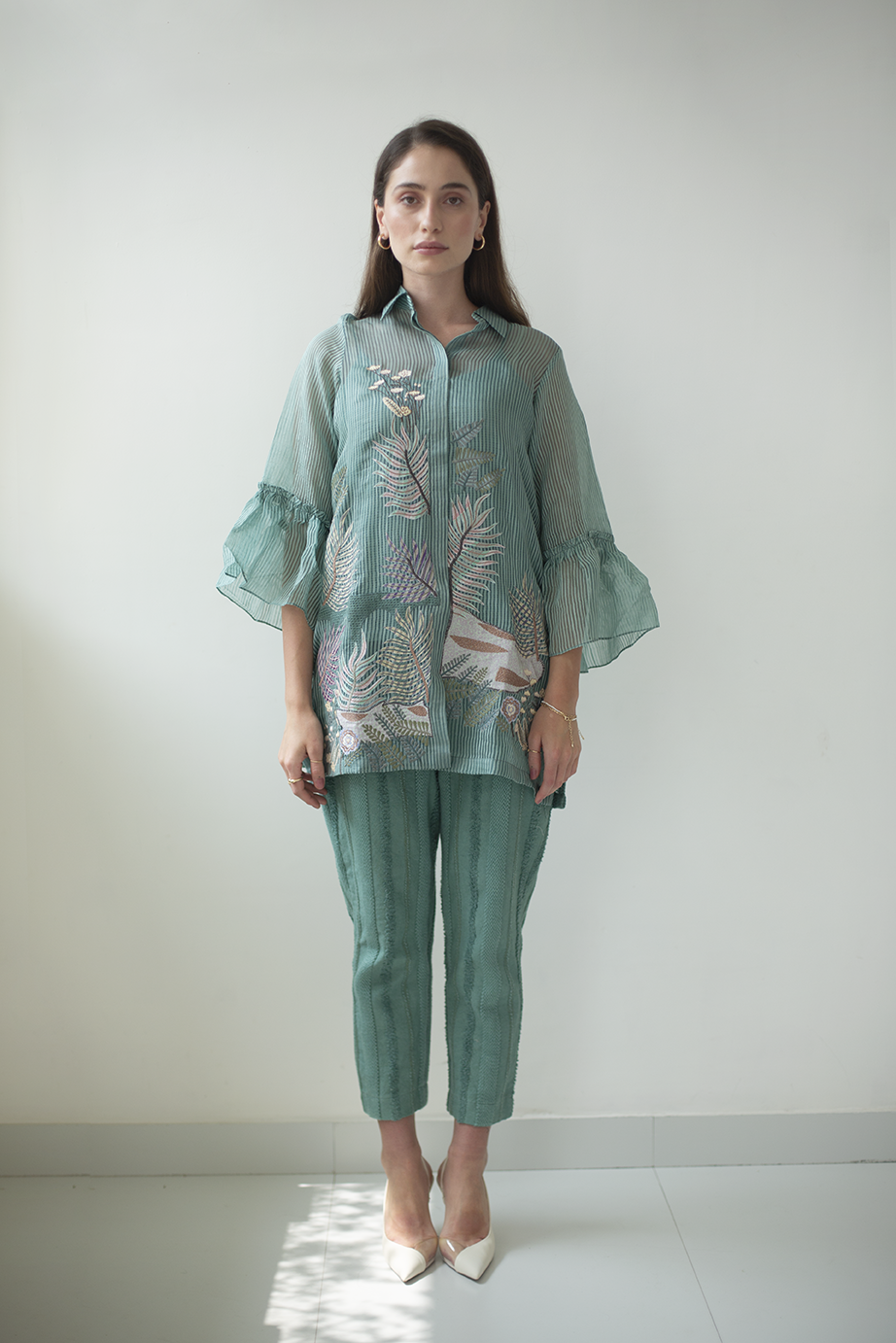 Fern Bell Sleeves Shirt Set Pine Green Bridge