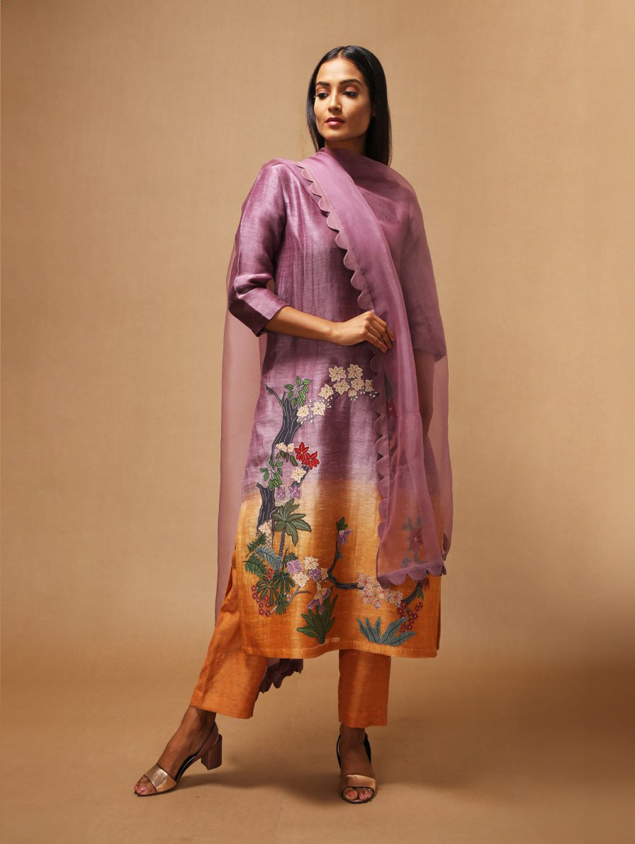 Floris Ombre Kurta Set  with Dupatta Purple Yellow